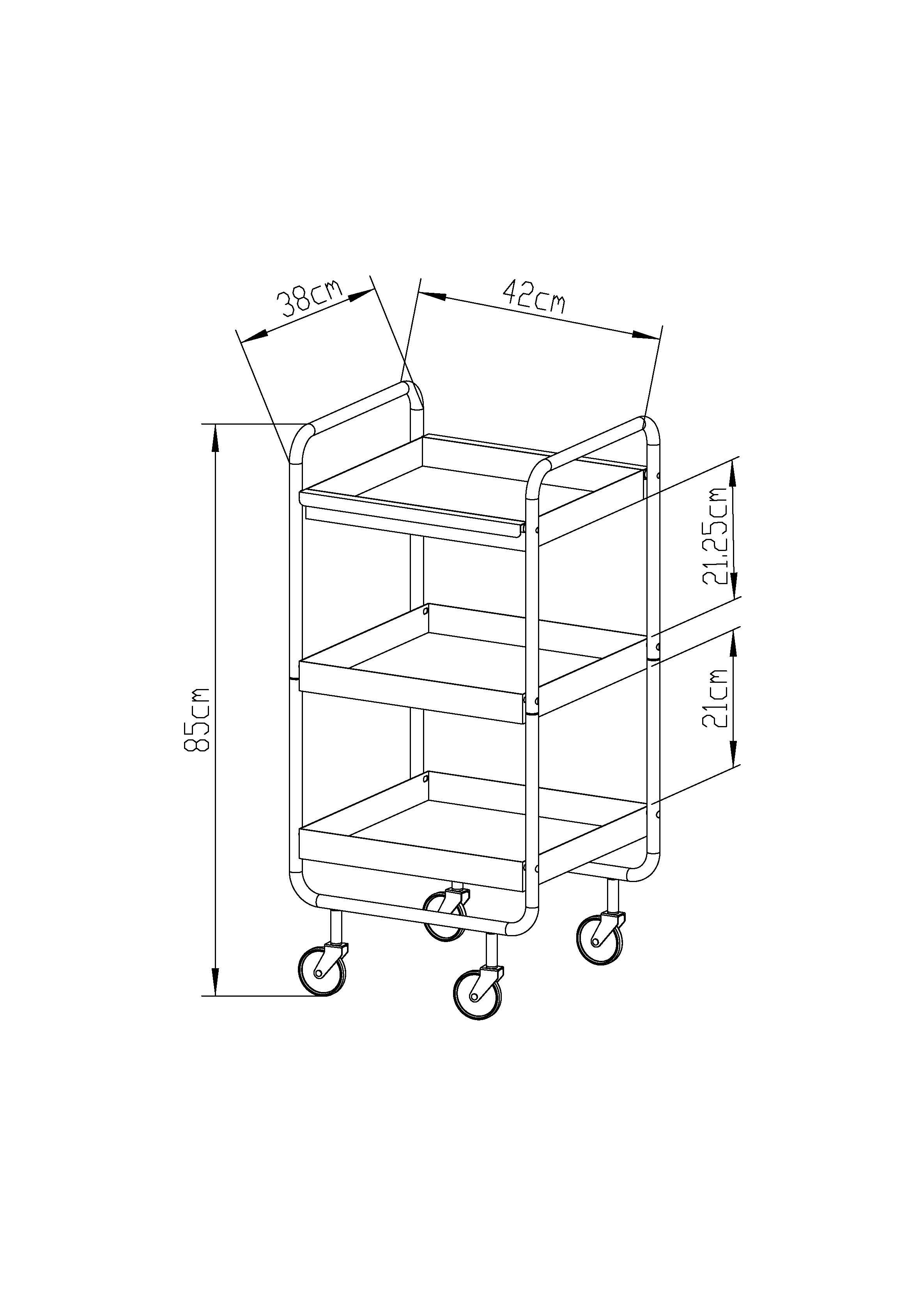 Grâce à sa conception bien pensée, le chariot offre des possibilités d'utilisation flexibles, que ce soit comme table d'appoint mobile, étagère décorative ou meuble pratique pour la cuisine, le bureau ou le salon. Le choix de matériaux stables garantit une longue durée de vie et une grande résistance, tandis que le design minimaliste confère au meuble un aspect à la fois moderne et élégant.