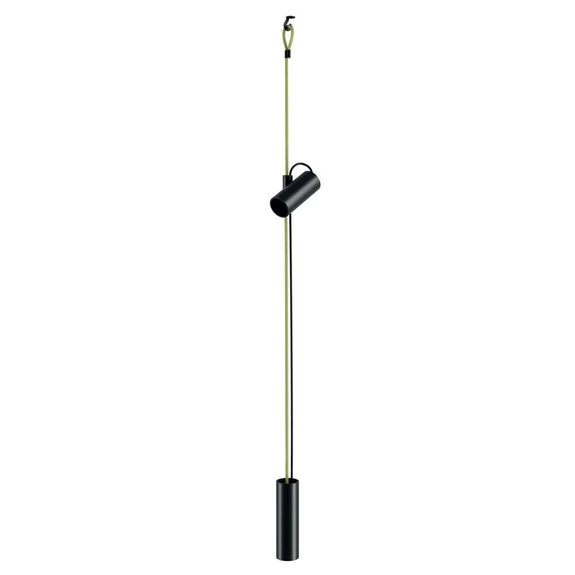 Cima Suspensions/Lampadaires Matt Black/Yellow a un design vraiment unique et créatif inspiré par le mécanisme de levage d'un bateau, que les Italiens appellent Cima. La lampe peut être fixée à n'importe quel endroit sur la corde qui s'étend du sol au plafond, et sa tête peut être inclinée vers le haut et vers le bas.
