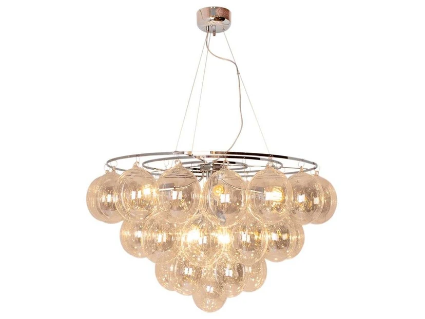 Gross est une lampe légère et élégante au design exquis et exclusif. Elle se compose d'une grappe de sphères en verre soufflé à la main qui s'assemblent pour ressembler à un nuage léger ou même à une vigne. Le verre clair donne à la Lampes une expression aérienne, conférant au design une certaine légèreté et élégance.