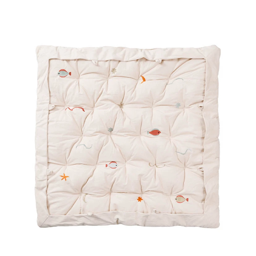 Le tapis Harbour Natural - Ferm Living est l'accessoire parfait pour votre maison. Conçu pour les enfants, ce tapis de Ferm Living est fabriqué à partir de notre toile de coton biologique non teintée. Il présente de magnifiques motifs brodés de la vie marine et de subtils détails matelassés qui ajoutent au confort. D'une taille de 100x100 cm et d'une hauteur de 5 cm, il s'intègre parfaitement dans toute pièce où les enfants jouent.