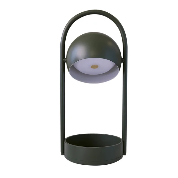 Ball Portable est une lampe de table LED rechargeable en métal avec un abat-jour hémisphérique. Elle est équipée de l'élément lumineux LED Frandsen One, qui offre trois niveaux de luminosité et se recharge à l'aide du câble USB fourni. Il convient de souligner son autonomie remarquable de 12 heures à rendement lumineux maximal. Une seule charge suffit pour un éclairage ininterrompu jour et nuit, ce qui fait de cette lampe le compagnon idéal pour toutes les situations à la maison ou à l'extérieur. Le pied en forme de coupe de la lampe à poser offre de la place pour ranger de nombreux petits objets.