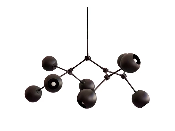 Le Drop Chandelier Globe Mini Burned Black de 101 Copenhagen est un lustre qui apporte une touche fascinante au design culte grâce à son élégant abat-jour sphérique en métal. Inspiré des designs géométriques des années 80, ce lustre met en valeur les lignes épurées et s'intègre facilement dans n'importe quel intérieur. Avec ses 14 bras métalliques réglables, le Drop Chandelier Globe offre une polyvalence exceptionnelle qui vous permet de personnaliser le lustre selon vos préférences et votre imagination. Que vous optiez pour une disposition symétrique pour un look équilibré ou asymétrique pour un effet dynamique, les possibilités d'expression artistique sont infinies. Fabriqué en métal noir, ce lustre apporte une touche raffinée à n'importe quelle pièce. Conçu par Kristian Sofus Hansen & Tommy Hyldahl, ce lustre n'est pas seulement une source de lumière, mais aussi une œuvre d'art qui peut transformer votre intérieur.