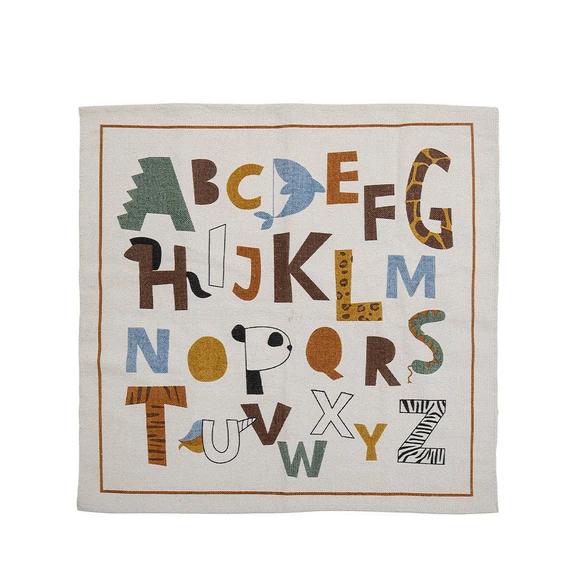 Le tapis Memmo 110x110 Nature de Bloomingville est l'accessoire parfait pour la chambre d'enfant. Ce charmant tapis est conçu avec une impression d'alphabet où les lettres sont en forme d'animaux amusants dans des couleurs sourdes. Il ne s'agit pas seulement d'un ajout décoratif à la pièce, mais aussi d'une expérience douillette et éducative pour les tout-petits. Le tapis est fabriqué dans un tissu doux qui garantit une surface de jeu confortable pour les enfants.