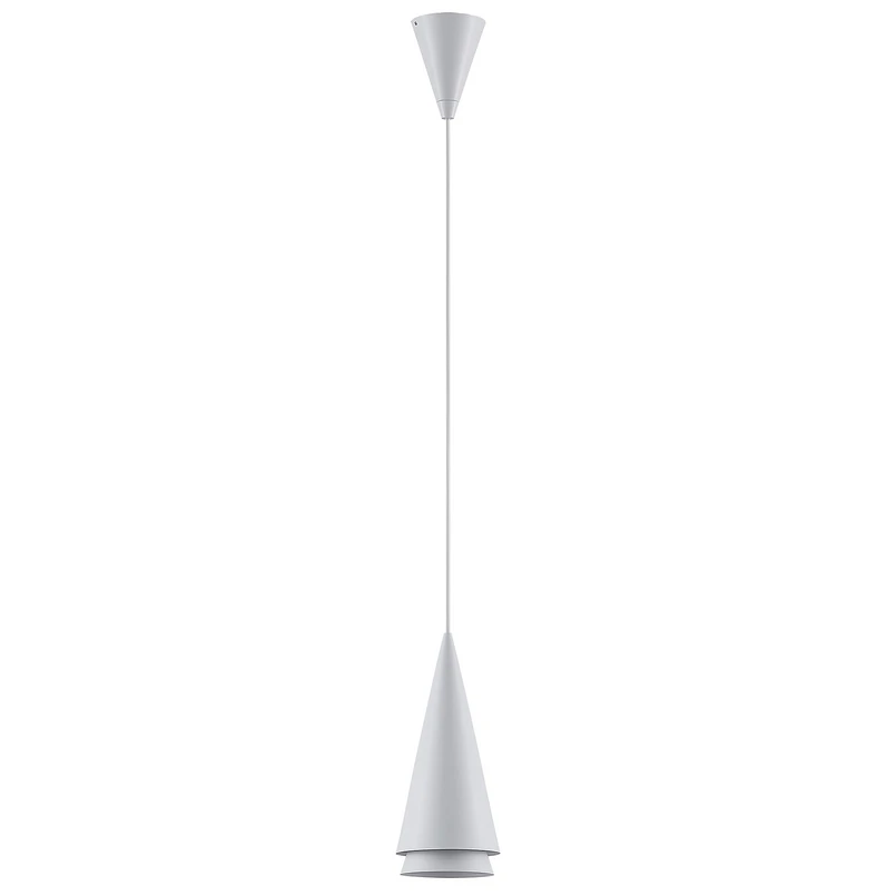 Cette suspension se distingue par ses lampes en forme de cône dans un design harmonieux à deux couches, créant un bel effet " d'abat-jour dans l'abat-jour ". À l'intérieur de l'abat-jour double se trouve une Douille E27 qui s'adapte à différents types d'ampoules. Il est recommandé d'utiliser des ampoules LED à faible consommation d'énergie, car elles durent longtemps et sont peu gourmandes en énergie, tout en offrant une luminosité élevée.