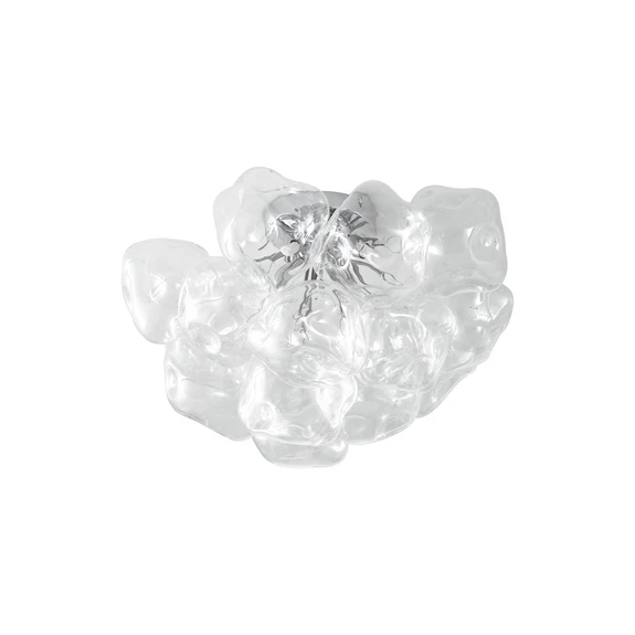Le plafonnier Diborah impressionne par son design exceptionnel composé de 16 boules de verre transparentes de forme irrégulière qui créent un effet lumineux vivant et fascinant. Les quatre ampoules G9 utilisées dans le luminaire éclairent directement les boules de verre et diffusent la lumière de manière harmonieuse dans toutes les directions.