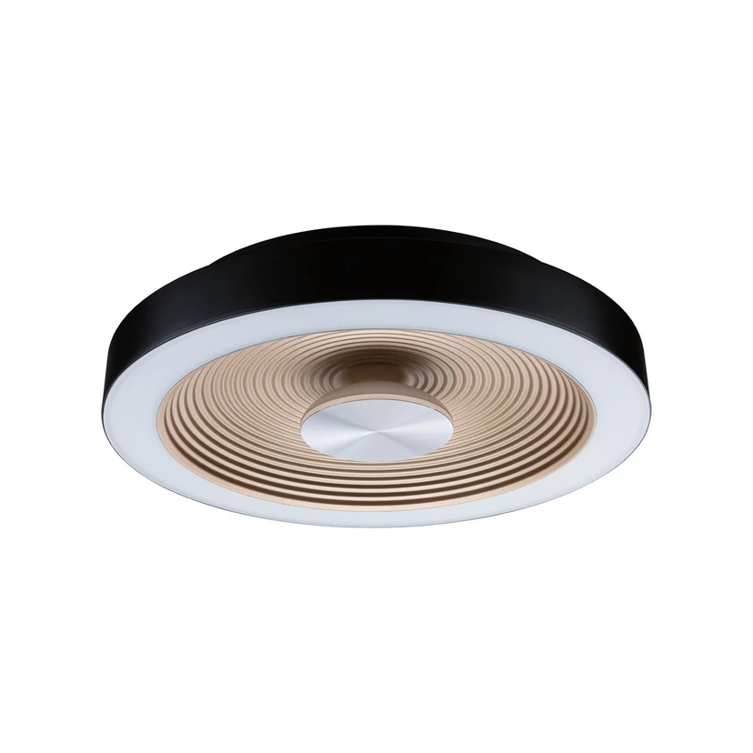 Le plafonnier LED Volea Ø32 IP44 Dim. Black/Gold de Paulmann est une solution d'éclairage élégante et fonctionnelle qui s'intègre parfaitement dans n'importe quelle maison. Fabriqué en plastique durable dans une élégante combinaison de couleurs noir et or, ce plafonnier a un diamètre de 32 cm et offre un mélange unique de lumière directe et indirecte. L'effet de profondeur tridimensionnel dans le cercle intérieur de la Lampe crée une atmosphère chaleureuse et accueillante dans la pièce. Avec une température de couleur de 3000 kelvins, la Lampe émet une lumière blanc chaud qui est idéale pour le salon, la chambre ou la salle de bain grâce à sa protection IP44 contre l'humidité. Vous pouvez facilement régler la luminosité en continu pour adapter l'éclairage à vos besoins. En outre, la Lampe Volea peut également être utilisée comme lampe suspendue à l'aide d'un support séparé, ce qui la rend parfaite pour éclairer la table à manger ou le comptoir de la cuisine. Découvrez la gamme complète Volea pour trouver la solution parfaite pour votre intérieur. Veuillez noter que toutes les lampes Volea possèdent deux modules LED distincts qui ne peuvent pas être allumés et éteints séparément, l'un extérieur et l'autre intérieur, chacun avec sa propre puissance.